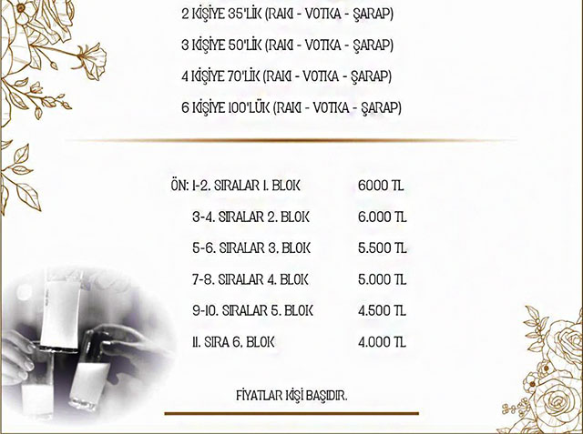 LEMARİZ'DE GALA'DA OLACAKLAR![]() Sakiler Grubu’nun, Zonguldak’ta düzenlenen yemekli müzikli gecede konser vereceği bildirildi. Zonguldak’ın Kozlu İlçesindeki Lemariz Et & Balık Restoran’daki Özel Gala yemekli müzikli gece 22 Ağustos Cuma günü gerçekleştirilecek. Saat 20’de başlayacak olan Özel Gala yemeğinden son dönemlerin sevilen grubu Sakiler sahne alacak. HER ŞEY DAHİL… Lemariz Et & Balık Restoran’da gerçekleştirilecek Özel Gala Müzikli Gecedeye katılacak seçkin davetlilere geceye özel menü hazırlanıyor. Ordevr tabağı ile başlayacak yemekte ara sıcak olarak ‘Paçanga Böreği’ ikram edilecek; ana yemek olarak ise karışık ızgara et sunulacak. Davetlilere ayrıca mevsim meyveleri; karpuz, kavun ve üzümden oluşan meyve tabakları ikramında bulunulacak. 22 Ağustos’ta, Kozlu Merkez Mahallesi Karaelmas Caddesi’ndeki Lemariz Et & Balık Restoran’da Sakiler Grubu’nun sahne alacağı Özel Gala Yemeğinde yer almak isteyenler, (0531) 705004040 yada (0542) 404 32 79 nolu telefonlardan bilgi alabilecek, rezervasyon yaptırabilecek. Her şey dahil gecenin içki menüsünde ise şunlar yer alıyor: