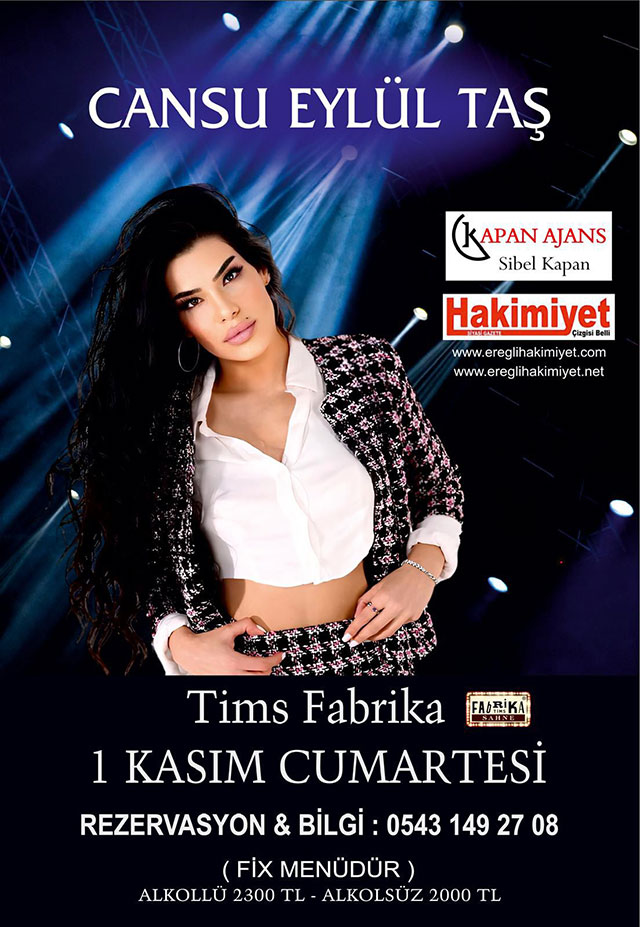 Kapan Ajans Sorumlu Müdürü Sibel Kapan, ilkini 24 Mayıs 2025’de gerçekleştirdikleri Çağdaş Suseven’in konser verdiği gecenin ‘muhteşem’ denilebilecek organizasyonla tamamlandığını hatırlatarak, şunları söyledi: “İlk organizasyonumuz ardından davetlilerimizden aldığımız çok sayıda olumlu dönüşün yanı sıra bölge kamuoyundan da olumlu eleştiriler alması, bu tür organizasyonları devam ettirmemize önemli vesile oldu. Bu doğrultuda yaptığımız çalışmalarla; yine yakından takip ettiğimiz Cansu Eylül Taş ile irtibata geçtik. Sanatçımızın da oluru ile birlikte yeni bir organizasyona yelken açtık. Bu kapsamda, Karadeniz Ereğli’nin en gözde mekanlarından olan Tims Fabrika’daki yemekli-müzikli eğlence gecemiz 1 Kasım’da gerçekleştirilecek.