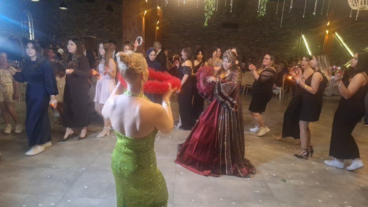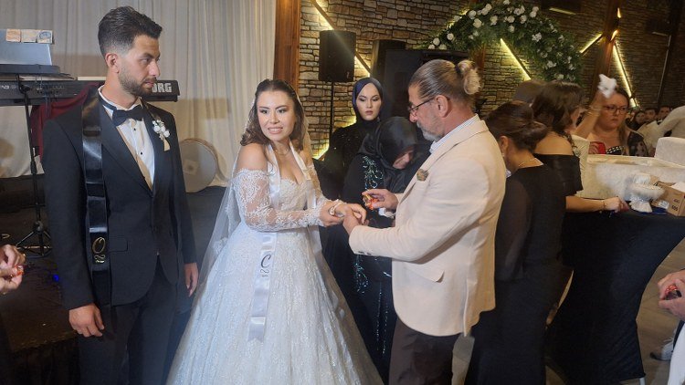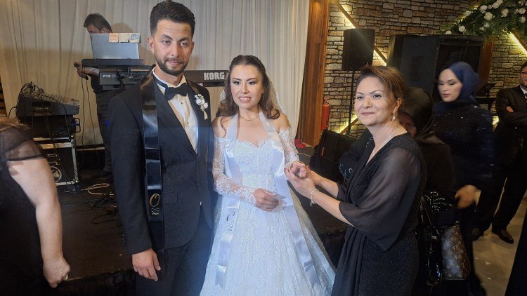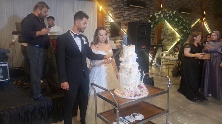 ÖNCE DÜĞÜN YAPTILAR, SONRA KINA YAKTILAR!![]() Zonguldak’ın Ereğli İlçesinde Ceyda & Onur Torlak çifti, görkemli düğün etkinliği sonrası dünya evine girdiler. Emine-Murat Yüksekol’un kızları Ceyda ile Gülşen Kapan ve Erol Torlak’ın oğulları Onur, İlçedeki Tims Fabrika Salonu’na, kalabalık davetlinin ayakta alkışları ile girdiler. Özel düzenlenmiş salonda ilk danslarını yapan Ceyda ile Onur’a bir süre sonra davetliler de eşlik ettiler. Orkestranın oyun havaları eşliğinde eğlencenin yükseldiği düğün etkinliğinde, genç çift düğün pastalarını birlikte kestiler, birbirlerine ikramda bulundular. Ardından geçilen davetlilerin hediyelerini kabul eden çiftin takı merasiminde uzun kuyruk oluştu. ORTALIK KINA GECESİNE DÖNÜŞTÜ Takı merasiminin ardından bir süre salondan ayrılan genç çiftlerden Gelin Ceyda, giydiği kına gecesi kıyafeti ve kadın arkadaşları eşliğinde salona girdi. Salonun ortasındaki sandalyeye oturan gelin Ceyda’nın bir ara ağladığı görüldü. Bu sırada, damadın annesi Gülşen Kapan’ın “gelenekselleşen ‘gelinin eline küçük altın” koyması sonrası kınanın yakıldığı salona, bu kez damat Onur, omuza astığı davulu çalarak arkadaşları ile birlikte salona girdi. Davetlilerin yoğun alkışları arasında gelin etrafında bir süre davul çalan damat, daha sonra kına duvağını açtığı Ceyda’yı alnından öptü. EĞLENCE DORUK YAPTI! Geleneksel kına seremonisinin ardından başlayan eğlence ise adeta tavan yaptı. Zaman zaman Trakya havaları ile coşkunun sınırları aştığı düğün etkinliğinde halaylar çekildi, horonlar tepildi. İlerleyen saatlere kadar devam eden etkinlik, aile fotoğraflarının çekimi ile tamamlandı. Hakimiyet Yayın Grubu olarak; Ceyda & Onur Torlak çiftine ömür boyu mutluluklar dileriz.
