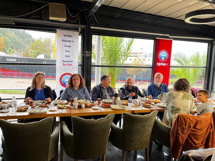 20. YILI KAHVALTIYLA KUTLADILAR![]() Zonguldak’ın Karadeniz Ereğli İlçesinde, Eğitim ve Bilim İşgörenleri Sendikası’nın (Eğitim-İş) 20. Kuruluş yıldönümü dolayısıyla kahvaltı etkinliği düzenlendi. Bugün (19 Ekim) İlçedeki Kahverengi Kafe’de gerçekleştirilen etkinlikte konuşan Eğitim-İş Zonguldak İl Başkanı Kamuran Çataklı, sendikanın kuruluş yıl dönümünü kutlarken, “Başımız dik, fikri hür, vicdanı hür nesiller yetiştirmek zorundayız” ifadelerine yer verdi. Eğitim-İş Karadeniz Ereğli Temsilcilik Başkanı Mahir Ersöz de, kalabalık bir camiaya sahip olduklarını belirtirken, “bu kalabalığın içinden çıkmak kolay değil. Eğitim camiası bütünüyle başka bir kalabalıktır. Bun de 45 yıldır camiamızın içindeyim. Sendikamızın kuruluşu kutlu olsun” dedi. Eğitim-İş İl ve İlçe Yönetim Kurulu üyeleri ile sendika üyelerinin eş ve çocuklarıyla birlikte katıldığı programda, kahvaltının ardından eğitim üzerine çeşitli sohbetlerde bulunuldu, hatıra fotoğrafları çektirildi.