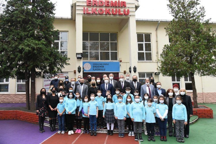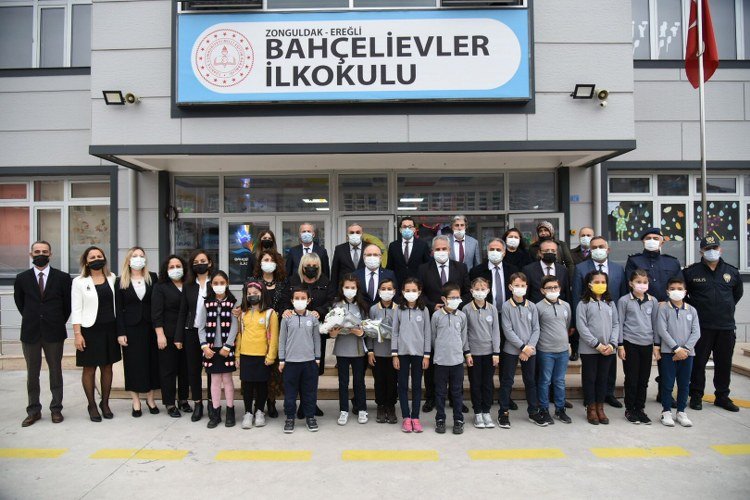 KÜTÜPHANELER İÇİN GELDİ![]() Zonguldak Valisi Mustafa Tutulmaz, Ereğli İlçesindeki bazı ilkokullarda oluşturulan kütüphanelerin açılışını gerçekleştirdi. Vali Tutulmaz, Cumhurbaşkanı eşi Emine Erdoğan’ın başlattığı "Kütüphanesiz Okul Kalmasın" projesi kapsamında İlçede projeyi gerçekleştiren okullardaki kütüphane açılışlarına Bahçelievler İlkokulu ile başladı. Burada öğrencilerle birlikte açılışı gerçekleştiren Vali Tutulmaz, kütüphaneyi gezdi, öğrencilerle birlikte kısa süreli kitap okudu. İKİNCİ DURAK KAVAKLIK İLKOKULU Daha sonra, Kavaklık mahallesindeki kavaklık İlkokulu’na geçen Vali Tutulmaz, burada Okul Müdürü Soner Arslanoğlu, öğretmenler ve bir grup öğrenci tarafından karşılandı. Açılış kurdelesini beraberindekilerle kesen Tutulmaz, gezdiği kütüphanede yine öğrencilerle sohbet etti, kitap okudu. ERDEMİR’İ ÇOK BEĞENDİ Vali Mustafa Tutulmaz, ilçedeki köklü geçmişi ile bilinen Erdemir İlkokulu’nda da, okul müdür İlker Kıbrıs, öğretmenler ve bir grup öğrenci tarafından karşılandı. Müdür Kıbrıs, kısa brifing verdiği Vali Tutulmaz’a, okullarında, 20 derslik, 2 Ana Sınıfı ve bir de Özel Eğitim Ana Sınıfı ile toplam 23 derslik bulunduğunu anlattı, okullarındaki uygulamalar ve çeşitli sosyal etkinliklerle ilgili bilgiler verdi. Vali Tutulmaz, oluşturulan Kütüphane açılışı ardından gezdiği okulu çok beğendiğini belirtirken, örnek teşkil etmesi gerektiğini söyledi. Vali Tutulmaz’ın açılış ve ziyaretlerine; Ereğli Kaymakamı Mehmet Yapıcı, İl Milli eğitim Müdürü Züleyha Aldoğan, İlçe Milli Eğitim Müdürü İsmail Aksoy, Ereğli belediye Başkan Yardımcısı Atilla Bulak, İlçe Emniyet Müdürü Hasan Ünlü, İlçe Jandarma Bölük Komutanı Üsteğmen Ali Akca, AK Parti İlçe Başkanı Saffet Bozkurt, İlçe Milli Eğitim Şube Müdürleri hazır bulundu. VALİLİK SOSYAL HESABINDAN… Bu arada, Zonguldak Valiliği Sosyal hesabında yer verilen açılışa ilişkin fotoğrafların altında ise şunlar kaydedildi: “Vali Mustafa Tutulmaz Sayın Cumhurbaşkanımızın eşi Emine Erdoğan Hanımefendinin himayelerinde başlatılan ‘Kütüphanesiz Okul Kalmasın’ projesi kapsamında Kdz. Ereğli ilçemizde Bahçelievler, Kavaklık ve Erdemir İlkokullarında düzenlenen kütüphanelerin açılışlarını yaptı. “Kalkınmanın, gelişmenin refaha ulaşmanın çok okumak ve çok çalışmakla mümkün olduğunu vurgulayan Vali Tutulmaz, öğrencilere bol bol kitap okumalarını tavsiye etti, birlikte kitap okudu, öğretmenlerle bilgi ve tecrübelerini paylaştı. Okuldaki atölyeleri gezen Vali tutulmaz, öğretmenlerle bir araya geldi.”
