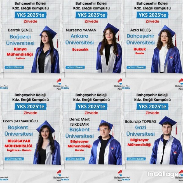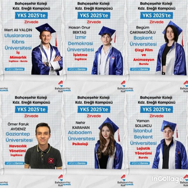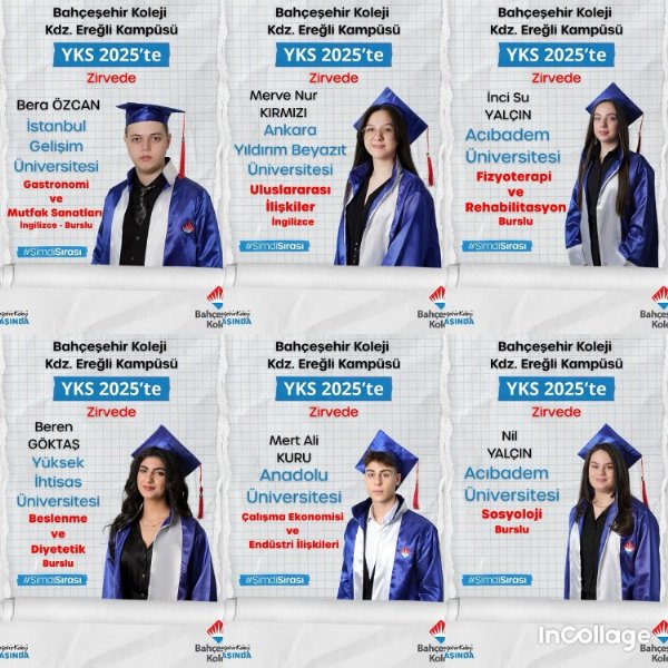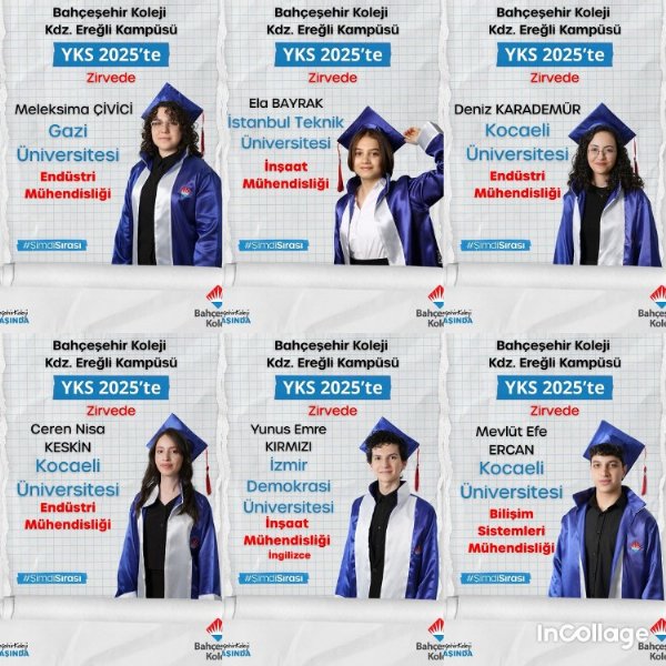 BAHÇEŞEHİR ZİRVEDE![]() Yükseköğretim Kurumları Sınavı (YKS) 2025 sonuçlarına göre Bahçeşehir Koleji Kdz.Ereğli Kampüsü zirvede yerini aldı. Bahçeşehir Koleji Karadeniz Ereğli Kampüs Müdürü Yeliz Ulukaya Sözer, sosyal hesaplarındaki paylaşımlarında, mezun öğrencilerinin yerleştikleri üniversitelere yer verirken, “Bahçeşehir Koleji Kdz. Ereğli Kampüsü olarak, öğrencilerimizin azmi ve öğretmenlerimizin özverisiyle 2025 YKS’de büyük bir başarıya imza attık” ifadelerini kullandı.
