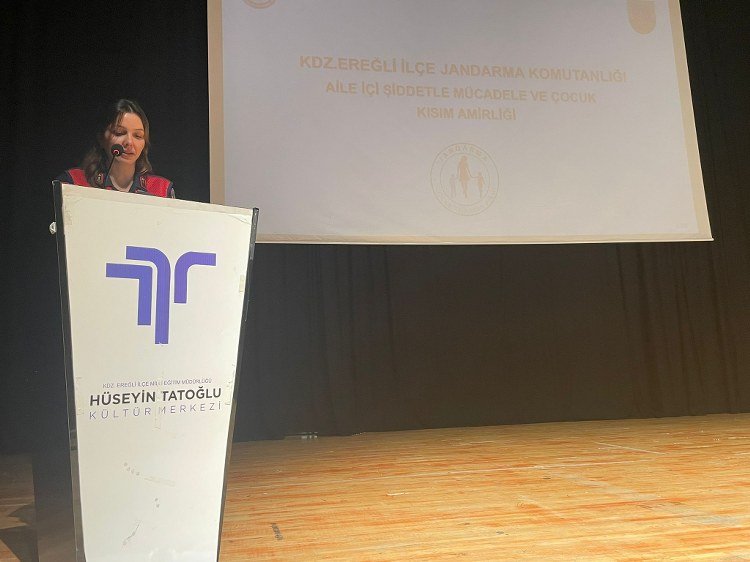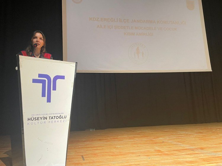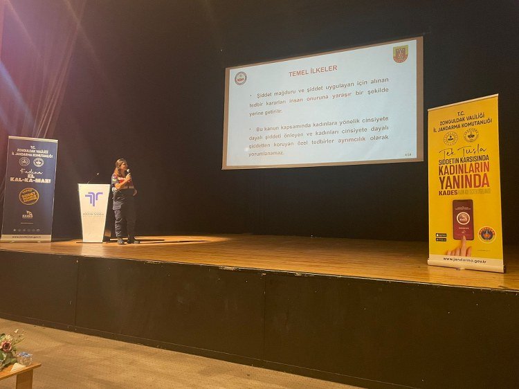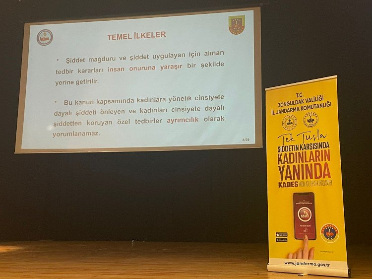 İLÇE JANDARMA BİLGİLENDİRDİ![]() (Haber: Sibel Kapan)-Zonguldak’ın Karadeniz Ereğli İlçe Jandarma Bölük Komutanlığınca “Aile içi şiddetle mücadele ve çocuk istismarı” konulu konferans düzenlendi. İlçedeki Hüseyin Tatoğlu Kültür Merkezinde düzenlenen konferansta konuşan İlçe Jandarma Bölük Astsubay Üstçavuş Bahar Yeter Karataş, toplanma amaçlarının 2025’in aile yılı olması sebebiyle aile içi, kadına ve çocuğa yönelik şiddet olaylarının yaşanmaması için, Devleti temsil eden memurların farkındalık oluşturması, bilgilendirme ve bilinçlendirme eğitimi adına düzenlendiğini söyledi. Şiddet konusunun kurumlararası iş birliği koordinasyonu sağlanıp yürütülmesini isteyen Karataş,şiddetin yaşam, eğitim ve sağlık hakkı gibi insan haklarının da ihlal edildiğini dile getirerek şunları kaydetti: “Kadın erkek çocuk fark etmeksizin hepimiz insanlık onuruna yakışır şekilde yaşamayı hak ediyoruz. Her birimiz bir ailenin parçasıyız ve biliyoruz ki güçlü aile toplum inşa eder bu toplum kurabilecek güç şiddetsiz bir hayatı benimsemekten geçiyor. Şeyh Edebalinin de hafızalarına kazınmış ‘İnsanı Yaşat ki Devlet Yaşasın’ sözü de her bireyin yaşam hakkının önemini vurgular. Jandarma aile içi şiddet ve kadına yönelik şiddet olayları karşısında kadife eldiven giydirilmiş bir çelik yumruğu temsil eder. Meydana gelen aile içi şiddet kadına yönelik şiddet ve çocuk istismarı olaylarında İlçe Jandarma Komutanlığımız şiddet mağduruna karşı kadife eldiveni ile şefkatle yaklaşım sergilerken şiddet uygulayan ve şüphelilere karşı ise jandarma çelik yumruğunu göstermekten çekinmeyecektir. Muhtarlarımızın, Okul Müdürlerimizin ve Din Görevlisi Hocalarımızın da destekleriyle başarı sağlanacağına inancımız tamdır.” İlçeye bağlı köy ve mahalle muhtarları, din görevlileri ile okul müdürlerinin katıldığı konferansta, aile içi, kadına ve çocuğa yönelik şiddet ile ilgili slayt gösterisi yapılarak bilgiler verildi.
