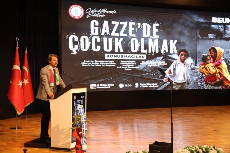 KATLİAMDA ÇOCUKLAR ANLATILDI![]() Zonguldak Bülent Ecevit Üniversitesi’nde (BEUN) İsrail’in Gazze’de yaşattığı acılara yönelik katliamı konu alan program düzenlendiği bildirildi. BEUN Basın, Yayın ve Halkla İlişkiler koordinatörlüğünün yazılı açıklamasına göre, BEUN’un Fabari Kampüsü Sezai Karakoç Kültür Merkezinde “Gazzede çocuk Olmak” temalı program saygı duruşunda bulunulup, İstiklal Marşının okunmasıyla başladı. BEUN Rektörü Prof Dr. İsmail Hakkı Özölçer, TRT arşivinden alınan “Gazze’de Çocuk Olmak” adlı kısa filmin izlenmesinin ardından yaptığı açılış konuşmasında, çocukların maruz kaldığı korku, ölüm ve açlığın Gazze’de yaşanan acıların en büyük göstergesi olduğunu belirterek, şunları kaydetti: “Oyuncak yerine moloz tutan minik eller, ninniler yerine siren sesleriyle uyuyan bebekler… Gazze’de hayatta kalmak artık bir mucizedir. Gazze’de yirmi bine yakın çocuk, dünyanın gözleri önünde hayatını kaybetti. Sadece çocukların değil, insanlığın onuru da yerle bir edildi. Çocukların sevgiyle, güvenle büyümesi gereken bir zamanda; biz, bugün Gazze’de yok edilen masum çocukların yasını tutuyor, onların feryatlarını duyurmaya çalışıyoruz. İsrail’in Filistin’de işlediği insanlık suçlarını şiddetle kınıyoruz. Hep birlikte insanlığın sesini daha güçlü duyuracağız.” MİLLETVEKİLİ ERTUĞRUL: DAHA FAZLA OMUZ OMUZA VERMELİYİZ Cumhuriyet Halk Partisi (CHP) Zonguldak Milletvekili Op. Dr. Eylem Ertuğ Ertuğrul de İsrail’in, dünya kamuoyunun tepkisine rağmen zulme devam ettiğine dikkat çektiği konuşmasında, şu görüşlere yer verdi: “Birbirimize daha fazla omuz vermeliyiz. İki yılda 18 bin çocuk hayatını kaybetti, daha fazlası açlık tehlikesiyle karşı karşıya. Bu tür organizasyonlar, mazlumların yanında durmanın önemini hatırlatıyor. Bu duygu ve düşüncelerle programın düzenlenmesinde emeği geçen başta Sayın Rektörümüz Prof. Dr. İsmail Hakkı Özölçer olmak üzere herkese, değerli konuşmacılarımıza, sevgili öğrencilerimize ve tüm kıymetli katılımcılarımıza teşekkür ederim.” KONUŞMACILARDAN ‘KATLİAM’ VURGUSU Kütahya Sağlık Bilimleri Üniversitesi Çocuk Cerrahisi Ana Bilim Dalı Başkanı Prof. Dr. İbrahim Uygun, konuşmasında, Gazze’de savaşın 80 yıldır devam ettiğini ve son 2 yılda bu sürece Türkiye'den tanıklık eden yedi doktordan biri olduğunu ifade ederken, Gazze Ahli Arab Hastanesi Ameliyathane Hemşiresi İman Uygun da hastaneye gelen ağır yaralı çocukları ve yaşadıkları insanlık dramını paylaştı. Memorial Dicle Hastanesinden Op. Dr. Taner Kamacı ise dünya kamuoyunun Gazze’deki insanlık dramına gösterdiği duyarlılığın önemine dikkat çekti. Programa; Zonguldak Cumhuriyet Başsavcısı Gökhan Kapağan, BEUN’un senato üyeleri, il ve ilçe protokolü, akademik ve idari personel, öğrenciler ve vatandaşlar katıldı. KARADENİZ EREĞLİ’DE BALIKÇILARIN TEPKİSİ Diğer yandan, Zonguldak’ın Karadeniz Ereğli İlçesinde de balıkçı teknekeli denizden geldikleri sahil kıyısında İsrail’in Gazze’ye yönelik katliam girişimini kınadılar. Sahil bandında da çoğunluğu kadınlardan oluşan kalabalık, ellerinde Filistin bayrakları ile balıkçıların tepkisine destek verdiler.