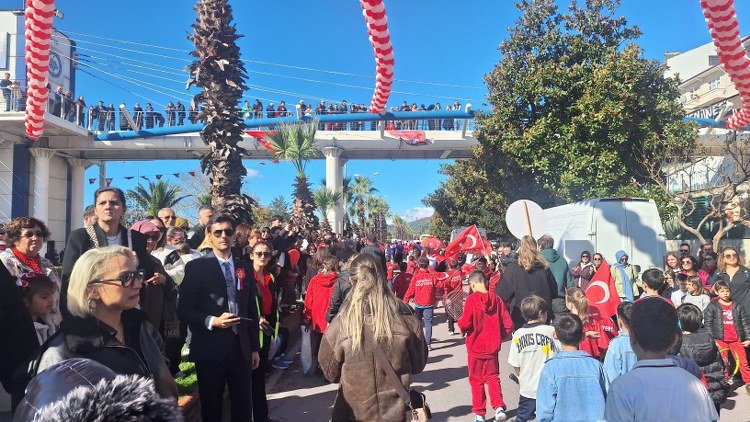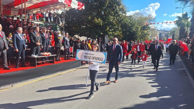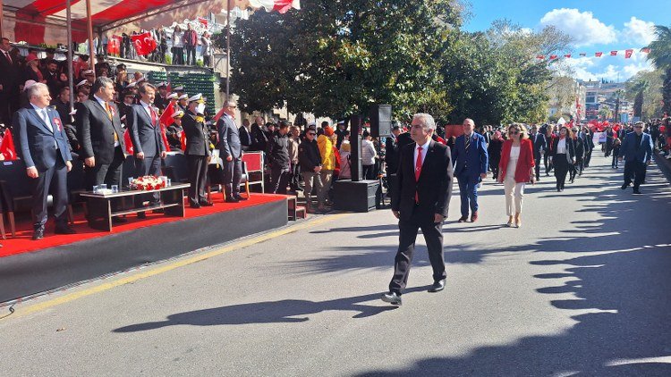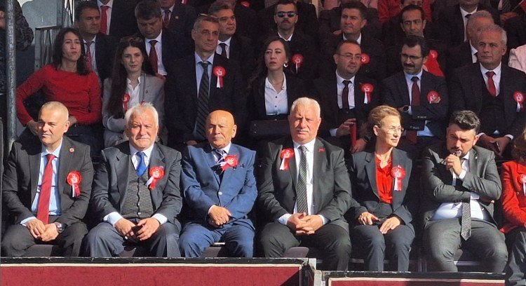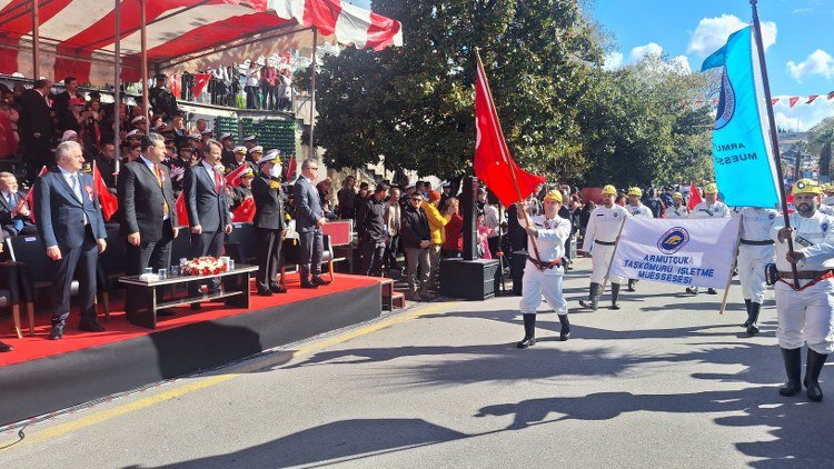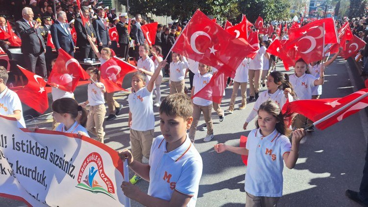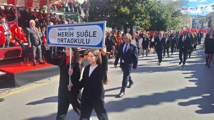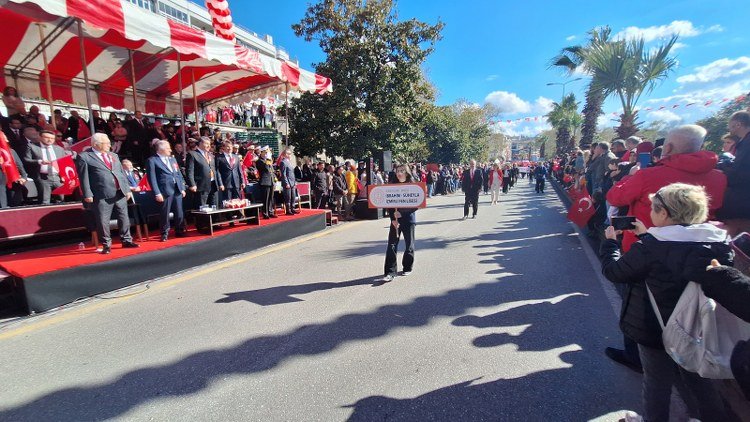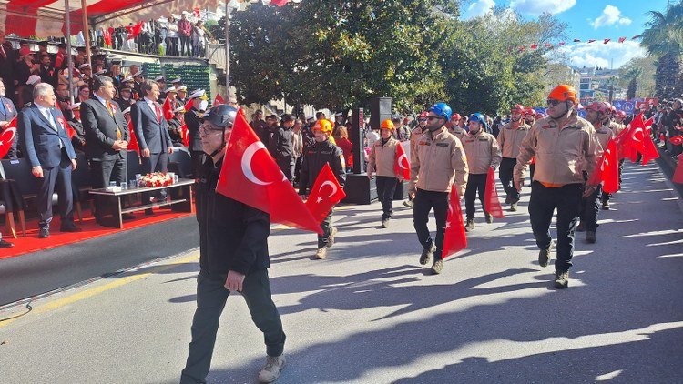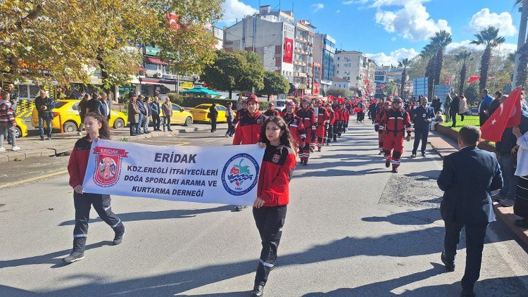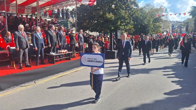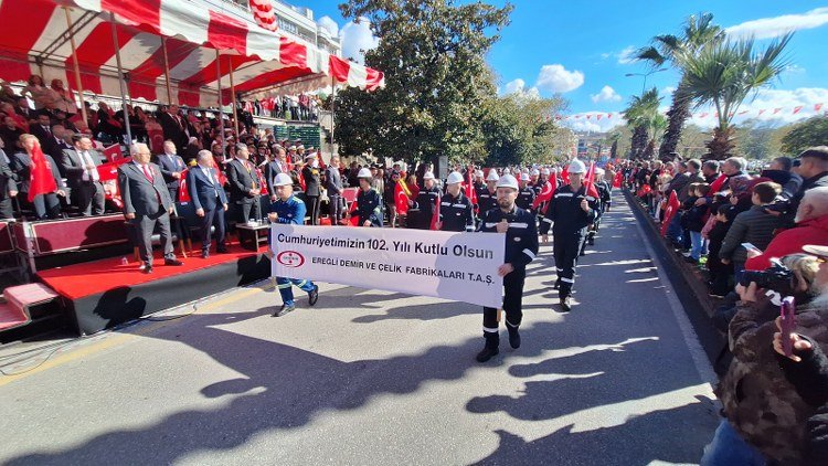 | CUMHURİYETİN KAZANDIRDIĞI DEĞERLERE SAHİP ÇIKALIM! Zonguldak’ın Karadeniz Ereğli İlçesinde, 29 Ekim Cumhuriyet Bayramı dolayısıyla geçit töreni düzenlendi. Karadeniz Ereğli kaymakamı Fatih Yılmaz’ın. Makamında tebrikleri kabulü ardından İlçenin Atatürk Bulvarı’nda gerçekleştirilen tören, Kaymakam Yılmaz’ın askeri araç üzerinden halkı selamlaması sonrası saygı duruşunda bulunulup, İstiklal Marşı’nın okunmasıyla başladı. Kaymakam Yılmaz, günün anlam ve önemini belirttiği konuşmasında, Cumhuriyetin, tarihteki en parlak başarılardan biri olduğunu hatırlatarak, şöyle dedi: CUMHURİYET; YENİDEN DİRİLİŞİN ADIDIR “Büyük günde, Cumhuriyetin kurucusu Büyük Atatürk’ü, onun kahraman silah arkadaşlarını, şehitlerimizi bir kez daha minnet ve rahmetle anıyoruz. Cumhuriyet, tarihin şafağında beri var olan milletimizin tarih içindeki büyük yolculuğunun çok önemli bir anında ona yepyeni bir hayat kazandıran ve ufuklar açan muhteşem bir olaydır. Cumhuriyet, milletimizin tarih sahnesinde yeniden dirilişinin adıdır. İnsanlık tarihi, milletlerin böylesine sarsılmaz bir ortak irade ile, kendi elleriyle yazdıkları ve çok nadir şahit olunmuştur. Bizi millet olarak bir arada tutan, toplumsal bütünlüğümüzü ve dayanışmamızı sağlayan Cumhuriyet misakının temelini ülkesine sadakat ile bağlı tüm vatandaşların eşitliği ve özgürlüğü oluşturmaktadır. Cumhuriyet eşitlik, özgürlük ve uygarlıktır. İnsanlık onurunu her şeyin üstünde tutmaktır. Cumhuriyet, cehalete, yoksulluğa ve çaresizliğe karşı verilen mücadelenin adıdır. Cumhuriyetin çağdaşlaşma projesi sayesinde Türkiye 102 yıl gibi kısa bir sürede demokratik bir sanayi toplumu haline gelmeyi başarmıştır. Bundan sonraki hedefimiz, demokratik bir bilgi toplumu olmaktır. Bölünmez bütünlüğümüze, demokrasimize ve Cumhuriyetin bizlere kazandırdığı değerlere sahip çıkalım. Türkiye Cumhuriyeti temel niteliklerini, hedeflerini, prensiplerini, sistemini koruyarak ve hür, serbest bir ülke olarak yoluna devam edecektir.” ETKİNLİKLERLE SÜRDÜ Okullarda düzenlenen yarışmalarda birincilik elde eden öğrencilerin şiir ve kompozisyonlarını okuduğun törende, Karadeniz Ereğli Belediyesi Halk Oyunları ekiplerince, çeşitli yörelere ait halk oyunları gösterisi gerçekleştirildi. Program, Hatice Erdem Denizcilik Meslek ve Teknik Anadolu Lisesi Bando Takımı işleğinde; Gaziler, İlçedeki Devlet ve özel olmak üzere orta okul, lise ve dengi okulların idarecileri, öğretmenleri ve birer grup öğrencileri, Türkiye Taş Kömürü Kurumu, Ereğli Demir ve Çelik Fabrikaları, çeşitli kurum ve kuruluşları temsilen gruplar ve bazı spor dallarındaki sporcu ile öğrenciler, Askeri, belediye ve bazı kurum araçlarının geçit töreni ile tamamlandı. Zonguldak Milletvekilleri Saffet Bozkurt ve Op. Dr. Eylem Ertuğ Ertuğrul, Karadeniz Bölge ve Garnizon Komutanı Tuğamiral Yücel Korkut, Karadeniz Ereğli Belediye Başkanı Halil Posbıyık, Kdz. Ereğli Cumhuriyet Başsavcısı Mustafa Erbaş, İlçedeki siyasi parti başkanları, Kaymakamlık Daire Müdürleri, siyasi partilerin yöneticileri ile sevil toplum kuruluşlarının katıldığı 29 Ekim Cumhuriyet Bayramı kutlamalarında vatandaş ilgisinin geçen yıllara göre daha fazla olduğu gözlendi.