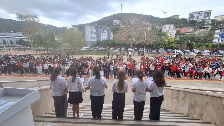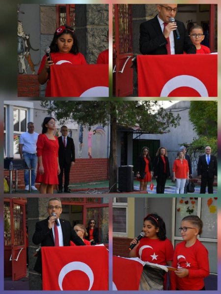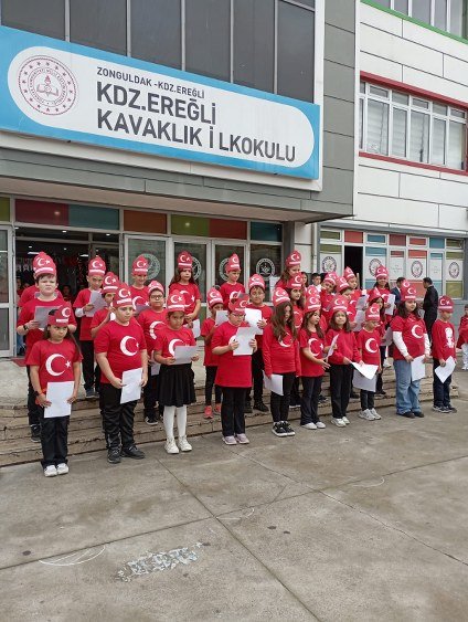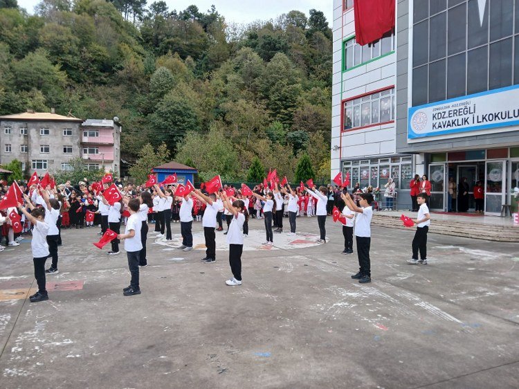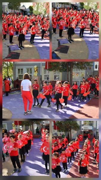 | OKULLARDA CUMHURİYET 29 Ekim Cumhuriyet Bayramı, okullarda bir gün önceden çeşitli programlarla kutlandı. CUMHURİYET'TE GÖRSEL ŞOV... Zonguldak’ın Karadeniz Ereğli İlçesindeki Cumhuriyet Ortaokulu, Merih Şuğle Ortaokulu, Restilci Ortaokulu, Kavaklık İlkokulu başta olmak üzere hemen hemen tüm okullarda hazırlanan programlarla kutlamalar gerçekleştirildi. Cumhuriyet Ortaokulunda, okul idaresi ve öğretmenlerin katkısı ile hazırlanan programda öğrenciler şiir okudu, İngilizce öğretmeni Yasemin Kebelioğlu da günün anlam ve önemini belirten konuşma yaptı. Koreografisini okulun Müdür Yardımcısı Nuray Gökhan’ın koreografisini yaptığı 6. sınıf öğrencilerin de de ellerinde Türk Bayrakları ile eşlik ettikleri Müzik Öğretmeni Funda Çalap yönetiminde sanatçı Kıraç’ın seslendirdiği “Cumhuriyet’in 100. Yılı” marşı eşliğinde görsel şölen oluşturuldu. Oluşturulan koreografi, aynı zamanda drone ile kayıt altına alındı. MERİH ŞUĞLE’DE CUMHURİYET İlçedeki Merih Şuğle Ortaokulunda da 28 Ekim’de girilen bayram tatili öncesi öğrenciler okul avlusunda toplandı. Saygı duruşunda bulunulan ve İstiklal Marşı okunan programda; okulun 8-B sınıfı öğrencisi Nisa Nur Adıgüzel, günün anlam ve önemini belirten konuşma yaptı. Merih Şuğle Ortaokulunda hazırlanan 29 Ekim Cumhuriyet Bayramı etkinlikleri Müzik Öğretmeni Aynur Yılmazer yönetiminde öğrencilerin seslendirdiği Cumhuriyet marşları ile tamamlandı. ERDEMİR’DE RENKLİ GÖRÜNTÜLER Bu arada Erdemir İlkokulu’nda düzenlenen cumhuriyet coşkusunda renkli sahneler oluştu. Okul Müdürü İlker Kıbrıs’ın günün anlam ve önemine yönelik konuşması sonrası öğrenci grupları, ‘vals’, ‘efe’, ‘harmandalı’ gibi bir çok yöresel oyunları başarı ile sahnelerken, alanda Türk Bayrağının renkleri olan Kırmızı-Beyaz hakimdi. KAVAKLIK’TA AİLELERLE BİRLİKTE… 29 Ekim Cumhuriyet Bayramı Kavaklık Mahallesindeki kavaklık İlkokulunda da çeşitli etkinliklerle kutlandı. Okul idaresi ve öğretmenlerin katkısı ile hazırlanan programda, Saygı duruşu ve İstiklal Marşı’nın okunması ardından öğrenciler günün anlam ve önemini belirten konuşmalar yaptı, şiirler okudu, Cumhuriyeti anımsatan skeçler sahnelendi. Ardından ise sınıf öğrencileri, üzerlerinde Türk Barağı ve Atatürk resimlerinin bulunduğu kıyafetlerle, hazırlanan çeşitli koreografileri sundular. Çocukların performansı, alanda bulunan ailelerince dakikalarca alkış aldı.