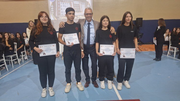 LİSEDE DUYGU YÜKLÜ PROGRAM![]() Zonguldak’ın Karadeniz Ereğli İlçesindeki Ereğli Lisesinde, 9. Sınıf öğrencilerine kokart takma töreni düzenlendi. Okulun spor salonunda “Geçmişten Geleceğe Kokart Takma Töreni” temasıyla gerçekleştirilen tören, saygı duruşunda bulunulup, okulun Müzik Öğretmeni Miraciye Aktaş yönetiminde İstiklal Marşı’nın okunmasıyla başladı. Ereğli lisesi Müdürü Alaattin Pekdemir, Lübnan asıllı Amerikalı ressam, şair ve filozof Halil Cibran’ın dizeleri ile başladığı konuşmasında, “çünkü o dizeler, bugünkü törenimizin ruhunu en derin şekilde anlattığını inanıyorum” dedi. Ereğli Lisesi’nin 1965’de eğitim-öğretime başladığını hatırlatan Pekdemir, şunları söyledi: “Ereğli Lisesi, sadece bir okul değil, bu şehrin kalbinde atan bir değerdir. Bugün, bu köklü mirasın yeni halkasını oluşturacak 9. sınıf öğrencilerimize kokartlarını takacağız. Bu kokart, yalnızca bir sembol değil; Ereğli Lisesi’ne aidiyetin, bir tarihe, bir kültüre, bir geleneğe bağlanmanın simgesidir. Her kokart, bu okulun geçmişine duyulan saygının ve geleceğe duyulan umudun ifadesidir.” ÖĞRENCİLERE SESLENDİ Müdür Pekdemir, 9. Sınıf öğrencilerine de seslendiği konuşmasını, şöyle sürdürdü: “Sevgili öğrencilerim, Sizler bugün bir okulun değil, bir ailenin parçası oluyorsunuz. Burada, sizden önce yürüyen binlerce mezunun izi var. Ve birazdan size kokart takacak olan değerli mezunlarımız, yıllar önce bu sıralarda oturmuş, aynı heyecanı yaşamış kişiler. Onların sizlere uzattığı her kokart, ‘Bizden size emanet’ diyen bir gönül bağının ifadesidir. Çünkü biz biliyoruz ki ‘Bir okul, mezun vermez - bir aile büyür.’ Bu vesileyle, aramızda artık olmayan, hayatını kaybeden tüm Ereğli Lisesi mezunlarımızı da rahmet, minnet ve sevgiyle anıyorum.” PEKDEMİR’DEN VELİLERE Konuşmasının son bölümünde öğrenci velilerine de hitabeden Müdür Pekdemir, “Sizler, çocuklarınızı bize emanet ederken aslında geleceğin temellerini bizlerle birlikte atıyorsunuz. Onların başarısı kadar, bu ailenin bir parçası olmaları da sizlerin desteğiyle mümkün. Biz okul olarak her öğrencimize sadece bilgi değil, karakter, sorumluluk ve vefa duygusu da kazandırmak istiyoruz” diye konuştu. ÖDÜLLER VERİLDİ, KOKARTLAR TAKILDI Programda, geçmişte okulda müdür olarak görev yapmış isimlere, çeşitli sportif ve sanatsal etkinliklerde başarı elde etmiş öğrenci ve öğretmenlere, okula emeği geçmiş emekli öğretmenlere plaket ile madalyaları takılan törende, Müzik Öğretmeni Aktaş şefliğinde oluşturulan müzik grubu çeşitli şarkılar seslendirdi. Karadeniz Ereğli İlçe Milli Eğitim Şube Müdürü Ümmü Gülsüm Dedeşah, çeşitli okul müdürleri, Ereğli lisesi öğretmenlerinin de yer aldığı tören, uzun yıllar önce okuldan mezun olanlar tarafından 9. Sınıf öğrencilerine kokartlarının takılması ile tamamlandı.