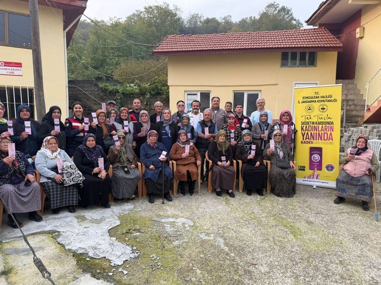 PROGRAM ANLATILDI, TELEFONLARA YÜKLENDİ![]() Zonguldak’ın Karadeniz Ereğli İlçesinde, Jandarma tarafından kadınlara yönelik “Kadına Destek Uygulaması (KADES)” kapsamında bilgilendirme yapıldığı bildirildi. Edinilen bilgiye göre Dün (7 Kasım), Karadeniz Ereğli İlçe Jandarma Komutanlığı Aile İçi Şiddetle Mücadele Çocuk Kısım Amirliğince gerçekleştirilen programda, İlçeye bağlı Hasbeyler Köyündeki 30 kadın bilgilendirildi. 6284 Sayılı Kanun ile KADES Uygulamasına Yönelik Bilinçlendirme Faaliyetinde kadınlara; “Ailenin Önemi, Şiddetin Tanımı ve Çeşitleri, Şiddet Mağdurlarının başvuru yöntemleri, 6284 Sayılı Kanun ve KADES Uygulaması” hakkında bilgilendir verildi. KADES broşürleri dağıtılan kadınların telefonlarına, acil durumlarda kullanılması maksadıyla uygulamanın da yüklendiği etkinlikte ayrıca köyde ikamet eden 20 erkeğe ise KADES broşürü dağıtıldı.