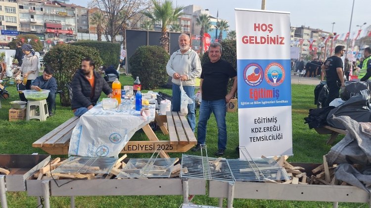 FESTİVAL BÖYLE BAŞLADI![]() Zonguldak’ın Karadeniz Ereğli İlçesinde düzenlenen 16. Hamsi Festivali, bugün sabah saatlerinde başladı. Karadeniz Ereğli Belediyesinin, sponsorlar desteği ile gerçekleştirdiği feslivat, belediye ekiplerince bir gün önceden Sahil bandında oluşturulan oturma gruplarına çeşitli dernek, kurum ve kuruşlar ile vatandaşlar sabahın erken saatlerinde geldi. Bazı grupların sabah kahvaltılarını da alanda yaptıkları gözlenen etkinlikte, Karadeniz Ereğli belediye Başkanı Halil Posbıyık, eşi Neriman Posbıyık, CHP Ereğli İlçe Başkanı Zerrin Yılmaz Doğan ve bazı belediye meclis üyeleri; oluşturulan havuzdan poşetlere doldurdukları balıkları vatandaşlara verdi. Bu sırada, balık almak isteyen vatandaşların metrelerce kuyruk oluşturduğu görüldü. Aynı sırada belediye aracından vatandaşlara kömür, mangal ve yiyecek dağıtımı yapıldı. Bazı mesleki okulların yağda hamsi hazırlıkları görülen alanda, kemençe eşliğinde çalan müzikle birlikte oyunlar oynandı. Bu arada, geniş bir alanda ise ilçedeki protokol üyeleri ve öğretmenlere özel masalar oluşturulduğu gözlendi. Gün boyu çeşitli aktivitelerle devam edecek etkinlik, akşam saatlerinde Selçuk Balcı konseri ardından tamamlanacak.