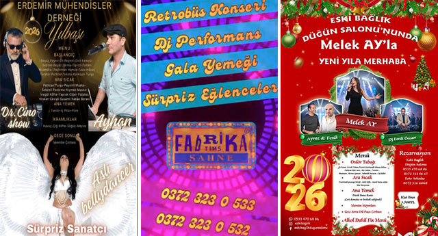 HANGİ MEKANDA, NE OLACAK?![]() Eski yılın son gecesinde, yeni yılı karşılamaya yönelik birçok eğlence mekanında etkinlikler düzenleniyor. Zonguldak Merkezde Lemariz Restoran’ın ‘Yeni yılın Gözdesi’ olarak tercih edileceği savunulurken, Karadeniz Ereğli’de ise Tims Fabrika, Erdemir Mühendisler Derneği Lokali, Eski Bağlık Salonu, İki Tek Restorant ve Büyük Anadolu Ereğli Otel’de yeni yıl eğlenceleri organize edildi. TİMS FABRİKA’DA NE VAR? Karadeniz Ereğli’nin gözde mekanlarından Fabrika Tims, yen iyıla bölgenin alıştığı ve sevilen grubu ile giriyor. Kırmacı Mahallesi Kandilli yolu üzerindeki Tims Fabrika’da 31 Aralık akşamı Retrobüs ekibi sahne alacak. Saat 20.00’de başlayacak geceye özel hazırlanan menünün davetlilere ikram edileceği etkinlikte, sürprizler de davetlileri bekliyor. MÜHENDİSLER’DE ASLI ESECEK! Yeni yıla özel hazırlanan Erdemir Mühendisler Derneği Lokali’nde ise son dönemlerde ismi öne çıkan oryantal Aslı sahnede olacak. Bölgede “Dr. Cino’ olarak isim yapan DJ olarak sahnede yer alacağı etkinlikte yerel müzisyen Ayhan da seslendireceği şarkılarla davetlileri eğlendirecek. Erdemir Mühendisler Derneğindeki gece de seçkin menüsü ile dikkat çekiyor. ESKİ BAĞLIK’TA MELEK AY… Karadeniz Ereğli’nin en köklü mekanlarından olan Eski Bağlık salonundaki yeni yıl organizasyonu da ilgi çekiyor. Geceye özel menü hazırlanan etkinlikte Melek Ay sahnede olacak. Ayaz & Ferdi ikilisinin de yer alacağı gecede DJ’liği ise Ferdi Özcan yapacak. İKİ TEK HEDİYELERİYLE… İlçe Merkezinin Yalı Caddesindeki İki Tek Restoran da yeni yıl gecesine iddialı hazırlanan mekanlardan oldu. Geceye özel (alkollü içecekler dahil) fiks menü ile hazırlıklarını tamamlayan İki Tek Restoran’da, Arya sahnede olacak. Mekanın renkli simalarından Zenne Ozan’ın davetlilere özel gösterisi ile sürecek gecenin finalinde ise DJ devreye girecek. BÜYÜK ANADOLU OTEL’DE YENİ YIL… Bölgenin “4 Yıldızlı” tek konaklama tesisi olan Gülüç Beldesindeki Büyük Anadolu Ereğli Otel’de yeni yıla Dilara Ünal ile girilecek. Çeşitli tarifelerde hazırlanan Gala Menülerinin davetlilere sunulduğu Büyük Anadolu Ereğli Otel’deki Yeni Yıl kutlama gecesinde Orkestra nüans eşliğinde oryantal da sahnede olacak. …VE LEMARİZ… Zonguldak’taki eğlence dünyası ise Kozlu beldesindeki Lemariz Restoran’da yeni yılı kutlamaya hazırlanıyor. Nigar Yıldırım’ın sahne anacağı Lemariz Restoran da DJ performans, perküsyon show etkinlikleri sahnelenecek. Geceye özel menü ile masaların şenleneceği gecede, saat 20.00’ü gösterdiğinde ise yeni yıl havi fişek gösterileri ile tamamlanacak.