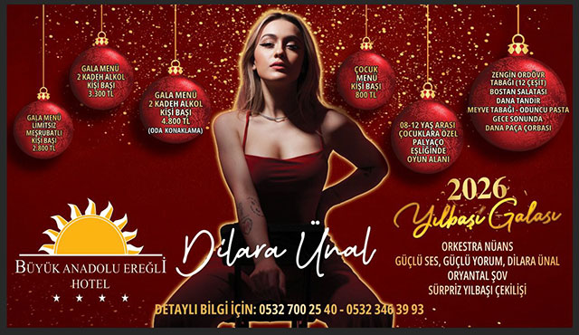 HER ŞEY HAZIR!![]() Zonguldak’ın Ereğli İlçesindeki Büyük Anadolu Ereğli Otel’de, bu akşam (31 Aralık) gerçekleştirilecek ‘Yeni Yıl Eğlencesi’ etkinliği hazırlıkları tamamlandı. İlçeye bağlı Gülüç Beldesinde kurulu, bölgenin tek 4 yıldızlı konaklama tesisi konumundaki Büyük Anadolu Ereğli Otel’in Erdemir salonu, sayılı/seçkin davetliyi ağırlayacak. Otelin geniş Erdemir Salonu’nda geceye özel konsept ile tamamlanan hazırlıklarda artık davetliler bekleniyor. Davetlilere çeşitli Gala menüleri sunulan yeni yıl eğlencesinde çocuklar da, çocuk menüsünün yanı sıra yine özel bölümde palyaço tiplemeli animatörler eşliğinde eğlenecekler. Alkollü içeceklerin de dahil olduğu menüde zengin ordövr tabağı bostan salatası, dana tandır, meyve, oduncu pastası yer alırken, yemekte final ise dana paça çorba ile tamamlanacak. EĞLENCE; VUR PATLASIN, ÇAL OYNASIN! Gecenin eğlence kısmında ise Orkestra Nüans eşliğinde sesi ve fiziği ile Dilara Ünal sahne alacak. Oryantal şov gösterisinin de yer alacağı gecede sürprizlerle dolu yılbaşı çekilişi de yapılacak. Halen geceye katılmak isteyen aileler detaylı bilgi için 0532 700 25 40 yada 0532 346 39 93 nolu telefon numaralarını arayabilecekler.