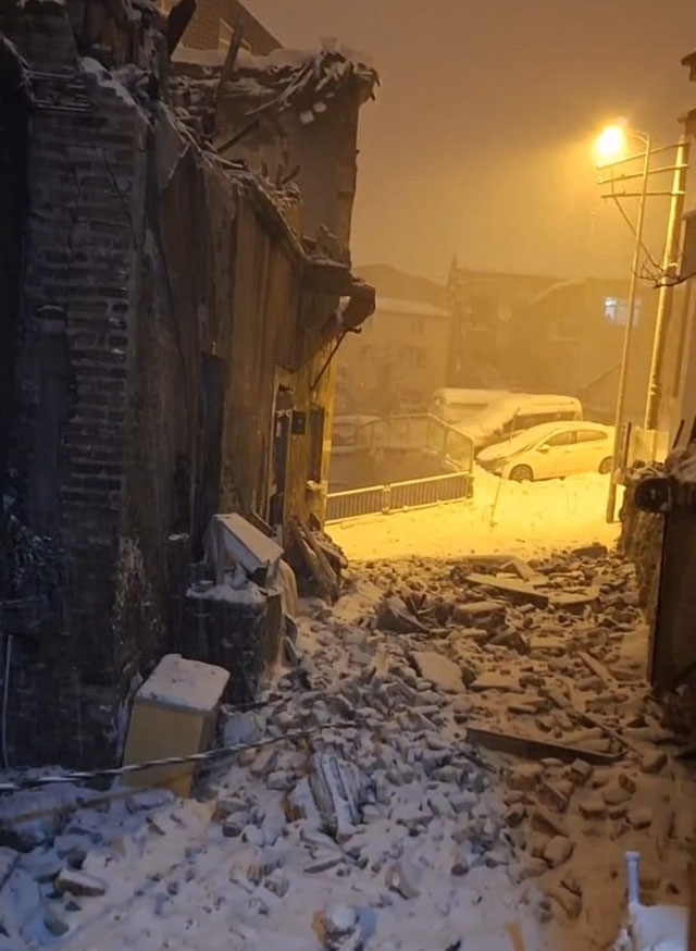 BİNANIN BİR BÖLÜMÜ ÇÖKTÜ !![]() Zonguldak’ın Karadeniz Ereğli İlçesinde, eski binanın çatısında çökme meydana geldi. Edinilen bilgiye göre, İlçeye bağlı Akarca Mahallesi Foto Sokak’ta-ki 2 katlı eski binanın çatısında, yoğun kar yağışı sonrası çekme meydana geldi. Saat 18.00 sularında yaşanan çökme anında, binanın 1. Ve 2. Katında oturan sakinler kendi imkanları güçlükle evi terk edebildi. Çatı ile birlikte binanın bir bölümünde de çökme yaşanan çökme sırasında çevrede çocukların kar oyunları oynadığı ancak herhangi can kaybı yada yaralananın olmadığı öğrenildi. Çökme sırasında bina yakınındaki enerji nakil hattından kopan elektrik tellerinin ise park halindeki araçların üzerine düdüğü ifade edildi. Durumun bildirilmesi üzerine bölgeye gelen ekipler çevrede güvenlik çemberi oluşturdu. YIKIM KARARI VERİLMİŞ! Bu arada. Çatısında çökme yaşanan binaya önceden yapılan tespitler doğrultusunda ‘yıkım’ kararı verildiği ancak, aradan geçen sürede yıkımın gerçekleştirilmediği ileri sürülüyor.
