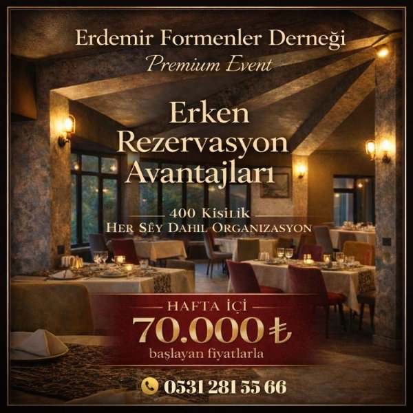 BİR KEZ GİDİN, BIRAKMAYACAKSINIZ!![]() Zonguldak’ın Karadeniz Ereğli İlçesindeki Erdemir Formenler ve Teknisyenler Derneği Lokali, yeni yüzü ile hizmet vermeye başladı. Bağlık Mahallesi Erdemir lojmanları Konukevi Alt Sokak mevkisindeki Erdemir Formenler Derneği Lokali’nde, düğün, nişan, toplantı gibi çok amaçlı kullanılabilen 300 kişi kapasiteli salonu yanı sıra, A La Carte Restoranı ve Premium Cafe’si ile mekânda tercih zenginliği sunuyor. Meze ve yiyecek zenginliği ile dikkat çeken Erdemir Formenler ve Teknisyenler Derneği Lokali’nde, menüde uygulanan fiyat politikası da gözden kaçmıyor. Bunun yanı sıra, yaka kartlarını göstermeleri halinde Erdemir’de çalışanı formenlere yüzde 25, Tüm Erdemir personeline ise yüzde 15 indirim uygulanıyor. Kahvaltı tercih mekan konumundaki Erdemir Formenler ve Teknisyenler Derneği Lokali’nde, Cumartesi akşamları da canlı performans ile gerçekleştirilen eğlenceli geceler organize ediliyor.