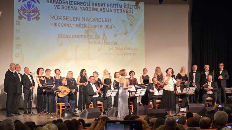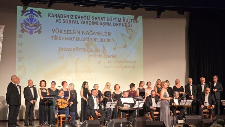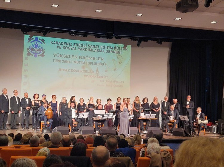 İLK KONSERLERİNİ VERDİLER!![]() Zonguldak’ın Karadeniz Ereğli İlçesinde, Yükselen nağmeler Türk Sanat Müziği topluluğu, ilk konser etkinliğini gerçekleştirdi. Geçtiğimiz aylarda, Erdemir Kültür Sanat Derneği bünyesinden ayrılan Şef Zuhal Yüksel ve ekibi, oluşturdukları toplulukla yaptıkları çalışmaları ilkini dün (7 Ocak) Erdemir Kültür Merkezi’nde izleyenlere sundular. Şef Yükselen’in yönettiği “Hicaz Köçekçeler ve Solo Eserler” başlıklı konserde seslendirilen koro ve solo şarkılar, salonu dolduran kalabalık davetli tarafından beğenilerek alkışlandı. Şef Yükselen, konserin ardından gazetecilerin sorusu üzerine yaptığı açıklamada, yeni oluşumda da uzun yıllar birlikte çalıştıkları arkadaşlarının yer aldığını belirterek, “ortaya koyduğumuz sanatsal çalışmanın, izleyicilerimiz tarafından beğeni ile alkışlanması çok güzeldi. Öncelikle herkese çok teşekkür ediyorum. Bu ilgi, çalışmalarımızı daha da şevkle sürdürmemize vesile oldu” dedi. Bu arada, konser etkinliğine, aralarında ilçedeki Karadeniz Ereğli Aşk-Efza Derneği üyeleri de olmak üzere bir çok dernek üyeleri katıldı.