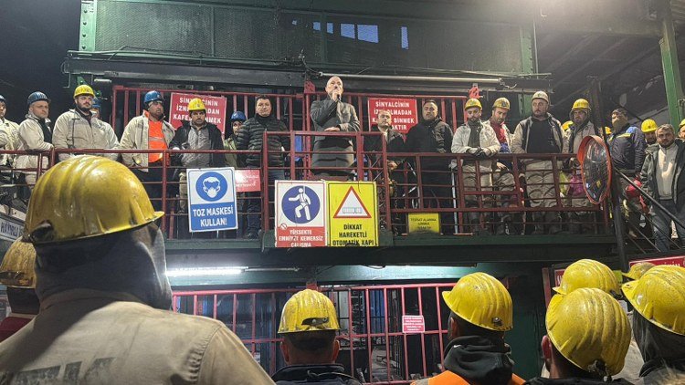 MADENCİYE ANLATTI![]() (Haber: Sibel Kapan)-Genel Maden İşçileri Sendikası (GMİS) Yönetimi geçici olarak iş durdurma kararı aldıklarını bildirdi. GMİS Basın Bürosundan yapılan yazılı açıklamaya göre, Gmis Genel Başkanı Hakan Yeşil ve Genel Merkez Yönetim Kurulu, Çalışma ve Sosyal Güvenlik Bakanlığı müfettişlerinin tespit ettiği eksiklikler nedeniyle geçici olarak iş durdurma kararı aldığı Türkiye Taşkömürü Kurumu’na (TTK) bağlı 3 müessesede işçilerle bir araya geldi. Bakanlığa bağlı İş Teftiş Kurulu Başkanlığı müfettişlerinin, TTK Karadon, Üzülmez ve Kozlu Müesseselerine bağlı maden ocaklarında iş sağlığı ve güvenliği yönünde tespit ettiği eksiklikler nedeniyle hazırladığı raporun Zonguldak Valiliği’ne teslim etmesinin ardından, 3 müesseseye bağlı 4 maden ocağında üretim geçici olarak durduruldu. GMİS Genel Başkanı Yeşil Karadon Müessesesine bağlı Gelik İşletmesi’nde, Genel Sekreter Yener Arslanbuğa Kozlu Müessesesinde, Genel Mali Sekreter Yalçın Yiğit Karadon Müessesesine bağlı Kilimli İşletmesi’nde, Genel Teşkilatlandırma ve Eğitim Sekreteri Tayfun Demir Üzülmez Müessesesinde maden işçilerine süreç hakkında bilgilendirmede bulundu.