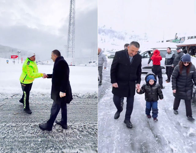 YOLDA DURDU, İNCELEME YAPTI!![]() Zonguldak Valisi Osman Hacıbektaşoğlu’nun Zonguldak-Karadeniz Ereğli karayolundaki trafik ekiplerinin çalışmalarını incelediği bildirildi. Zonguldak Valiliği’nin sosyal hesaplarından yapılan paylaşımda, Vali Hacıbektaşoğlu, güzergahta aracından inerek bölge trafik ekipleri ile güvenliğin sağlanması çalışmalarını görüştüğünü belirterek, şunları kaydetti: “Olumsuz hava koşullarında vatandaşlarımızın güvenliğini sağlamak amacıyla Kdz. Ereğli–Kandilli güzergâhında görev yapan çalışma arkadaşlarımızla bir araya geldik. Yolculuklarına mola veren kıymetli hemşerilerimizle hasbihal ettik, karın keyfini çıkaran evlatlarımızla buluştuk ve onların kar sevincine ortak olduk. Bu vesileyle vatandaşlarımızdan; kış lastiği ve gerekli kış ekipmanları bulunmadan, yalnızca kar keyfi için dahi olsa yola çıkmamalarını özellikle istirham ediyorum. Sahada fedakârca görev yapan tüm ekiplerimize teşekkür ediyor, hemşerilerimize güvenli yolculuklar diliyorum.” Paylaşılan kısa videoda da; aynı zamanda güzergahta kar keyfi için bölgeye gelen vatandaşlarla sohbette bulunan Vali Hacıbektaşoğlu’nun küçük çocukla birlikte yürüdüğü gözlendi. Vali Osman Hacıbektaşoğlu’na, Karadeniz Ereğli Kaymakamı Fatih Yılmaz ile İl Emniyet Müdürü Sinan Engin’in de eşlik ettiği görüldü.