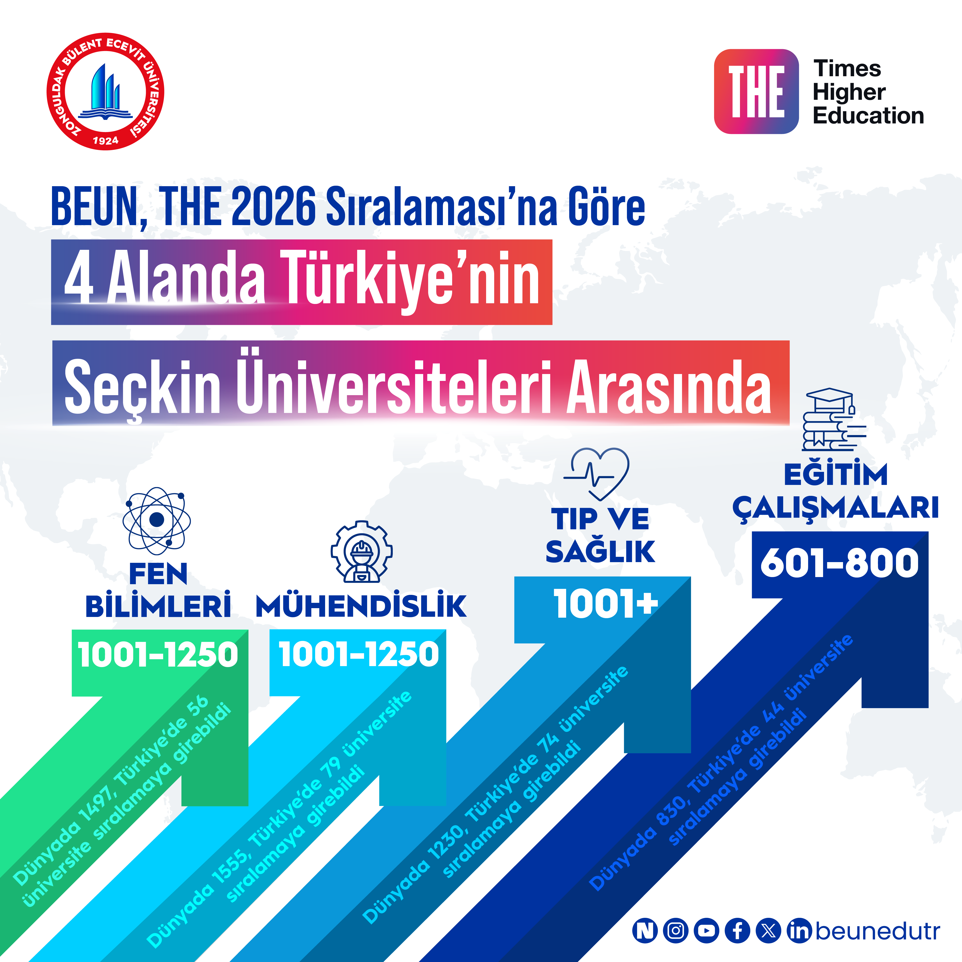 4 ALANDA BAŞARISINI İMZALADI![]() (Haber: Sibel Kapan)-Zonguldak Bülent Ecevit Üniversitesi (BEUN), Times Higher Education (THE) 2026 Alan Bazlı Dünya Üniversite Sıralaması (World University Rankings by Subject) dünya genelinde, seçkin üniversiteler arasında yer alarak 4 farklı alanda başarıya imza attığı bildirildi. BEUN Basın Yayın ve Halkla İlişkiler Koordinatörlüğünün yazılı açıklamaya göre; THE Dünya Üniversiteler Konu Alanı Sıralaması üniversiteleri; araştırma kalitesi, uluslararası görünüm, eğitim, araştırma çevresi ve sanayileşme olmak üzere beş temel kriter üzerinden değerlendirmesiyle yükseköğretim alanında kayda değer ve kapsamlı analizlerden biri olarak kabul ediliyor. BEUN’da dünyanın saygın üniversiteleri arasında yer alma hedefi doğrultusunda sürdürdüğü nitelikli, planlı ve sürdürülebilir akademik çalışmalarının karşılığını, uluslararası değerlendirme kuruluşlarının listelerinde istikrarlı biçimde almaya devam ediyor. 2025 yılında olduğu gibi 2026 yılında da “Tıp ve Sağlık”, “Mühendislik”, “Fen Bilimleri” ve “Eğitim Çalışmaları” alanlarında THE sıralamalarında yer alarak araştırma ve yenilik odaklı vizyonunu bir kez daha tescilledi. BEUN Rektörü Prof. Dr. İsmail Hakkı Özölçer, uluslararası başarılarının sürdürülebilir akademik vizyonlarının yansıması olduğunu dile getirerek şunları kaydetti: “4 farklı alanda THE sıralamalarında yer almamız; üniversitemizin eğitim kalitesi, araştırma ortamı, bilimsel üretkenliği ve uluslararası iş birliklerindeki güçlü konumunun bir göstergesidir. Bilimsel yayınlarımız, nitelikli projelerimiz ve etki değeri yüksek araştırmalarımızla ürettiğimiz bilgiyi yalnızca akademik camianın değil, tüm insanlığın hizmetine sunmayı önemsiyoruz. Bu anlayışla, sürdürülebilir başarıyı temel alan vizyonumuzu kararlılıkla sürdürmeye devam edeceğiz. Üniversitemizin her daim kendini yenileyen, başarılarıyla ön plana çıkan gelişim sürecinde bizlere destek olan başta Yükseköğretim Kurulu( YÖK) Başkanımız Sayın Prof. Dr. Erol Özvar olmak üzere değerli YÖK ailesine şükranlarımı sunuyorum. Bu başarıların mimarı olan tüm akademik ve idari personelimize ve sevgili öğrencilerimize gönülden teşekkür ediyor, Cumhuriyetin ilk üniversitesi olan BEUN bilimsel üretimi, toplumsal katkısı ve uluslararası görünürlüğüyle daha ileriye taşımak için çalışmalarımızı aynı azim ve kararlılıkla sürdürmeye devam edeceğiz.”