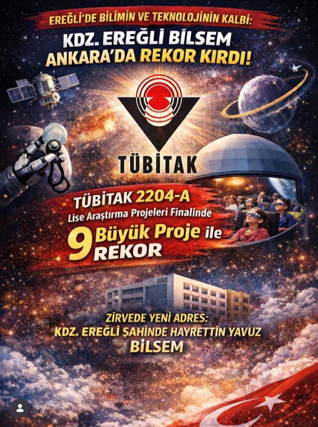 BİLSEM TARİHE GEÇTİ![]() Zonguldak’ın Karadeniz Ereğli İlçesindeki Şahinde-Hayrettin Yavuz Bilim Sanat Merkezi (BİLSEM), TÜBİTAK 2204-A Lise Araştırma Projeleri’nde Ankara Bölgesi’ni 9 proje ile rakora imza attığı bildirildi. İlçe Milli Eğitim Müdürlüğünden yapılan yazılı açıklamada, Kdz. Ereğli BİLSEM, TEKNOFEST finallerinden yerli tıbbi cihaz üretimine, NASA literatüründen eğitim iş birliği ağına, patent ve marka tescillerinden matematik şampiyonluklarına kadar birçok başarı elde ettiği belirtildi. BİLSEM’in ürettiği projelerle ilçedeki eğitim hayatına katkılarda bulunduğu anlatılan açıklamada, şunlar kaydedildi: “Ülkenin en zorlu grubu olan TÜBİTAK 2204-A Ankara Bölgesi’nde yarışan merkez, tek bir okuldan çıkan en yüksek proje sayısı olan 9 proje ile finalde yer alarak, Ankara dahil tüm rakiplerini geride bıraktı ve Zonguldak tarihinin en yüksek proje sayısına ulaştı. Bölge sergisine davet edilen projeler arasında 9 farklı çalışmayla yer alan BİLSEM, bu başarısıyla Ankara’daki köklü fen liselerini ve kolejleri geride bıraktı. Bu sonuç, Ereğli’nin akademik potansiyelini ve Kdz. Ereğli Şahinde - Hayrettin Yavuz BİLSEM’in proje üretim gücünü bir kez daha tescilledi.” REKORTMEN DANIŞMAN! Bu arada, Danışman Öğretmen Gürol Keserci, kabul edilen 4 projesi ile Ankara Bölgesi’nde ve Zonguldak genelinde "en fazla projesi geçen danışman öğretmen" olarak tarihe geçerken Müzeyyen Merve Bakangöz ve Adnan Akyüz 2’şer proje, Ebru Apaydın da 1 proje ile göz dolduran danışman öğretmenler oldular. ÇAKIR: 9 PROJE BU VİZYONUN ESERİDİR BİLSEM Müdürü Serkan Çakır, yaptıkları çalışmalarla Karadeniz Ereğli’nin Bilim Meşalesini Taşıdıklarını savunarak, şöyle dedi: "Biz sadece kendi duvarlarımız içinde eğitim veren değil, Ereğli’deki tüm evlatlarımıza planetaryumumuzla gökyüzünü açan, TEKNOFEST ruhuyla teknoloji üreten ve öğrencilerimizin bilimsel süreç becerilerini sürekli geliştirme arzusunda olan bir merkeziz. Ankara dahil tüm bölgeyi geride bırakan 9 projemiz, bu vizyonun eseridir. Başta her konuda destek olan İl ve İlçe Milli Eğitim Müdürlüğümüze teşekkür eder ve mesai arkadaşım tüm danışman öğretmenlerimizi, bize bu gururu yaşatan öğrencilerimizi kutlarım. Var olsunlar." HANGİ OKUL, KAÇ PROJEYLE Diğer yandan, “En Çok Projesi Kabul Edilen Okullar” şöyle sıralandı: Zonguldak Kdz. Ereğli Şahinde Hayrettin Yavuz Bilim ve Sanat Merkezi: 9 Proje Ankara Fen Lisesi: 7 Proje Ankara Şehit Ünal Olgun Bilim ve Sanat Merkezi: 5 Proje Ankara Özel Ankara Sanayi Odası (ASO) Teknik Koleji Mesleki ve Teknik Anadolu Lisesi: 4 Proje Ankara Çubuk Bilim ve Sanat Merkezi: 4 Proje Zonguldak Fen Lisesi: 3 Proje Ankara Gazi Anadolu Lisesi: 3 Proje Ankara Özel Eryaman Okyanus Anadolu Lisesi: 3 Proje Ankara Özel İncek Okyanus Fen ve Teknoloji Lisesi: 2 Proje Ankara Ayhan Sümer Anadolu Lisesi: 2 Proje Ankara Etimesgut Bilim ve Sanat Merkezi: 2 Proje Ankara Kahramankazan Bilim ve Sanat Merkezi: 2 Proje Ankara Hezarfen Ahmet Çelebi Bilim ve Sanat Merkezi: 2 Proje Ankara Hacı Çelebi Döndü Beker Bilim ve Sanat Merkezi: 2 Proje Ankara Keçiören Bilim ve Sanat Merkezi: 2 Proje Karadeniz Ereğli BİLSEM dışındaki bazı projelerde diğer okullarla ortaklığı bulunuyor.