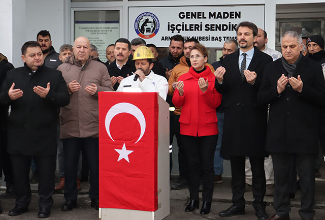 43 YIL GEÇTİ AMA DAHA DÜN GİBİ!!!![]() Zonguldak’ın Karadeniz Ereğli İlçesine bağlı Kandilli Beldesinde, 43 yıl önce yaşanan maden faciasında yaşamını yitiren Maden şehitleri törenle anıldı. Türkiye Taşkömürü Kurumu’na (TTK) bağlı Armutçuk Müessesesi’nde 7 Mart 1983’de yaşanan grizu faciasında yaşamını yitiren 103 madenci için, ocak önündeki alanda düzenlenen anma töreninde saygı duruşunda bulunuldu, şehitler için Kur’an-ı Kerim okunarak dualar edildi. GMİS Armutçuk Şube Başkanı Şanver Turan, buradaki konuşmasında, 43 yıl önce şehit olan 103 maden işçisini ve tüm maden şehitleri ile tüm vatan şehitlerini sevgi, saygı ve rahmetle andıklarını söyledi. Grizu faciasından yaralı kurtulan emekli maden işçisi Hüseyin Demirel'e, TTK Genel Müdür Yardımcısı Fazlı Uncu tarafından tüm şehit madenciler anısına madenci heykeli takdim edilmesinin ardından madencilere ocağa inerek işbaşı yaptılar. Törene; AK Parti Zonguldak Milletvekili Saffet Bozkurt, CHP Zonguldak Milletvekili Eylem Ertuğrul, Genel Maden İşçileri Sendikası (GMİS) Genel Başkanı Hakan Yeşil, Alaplı Belediye Başkanı Nuri Tekin, Ak Parti İlçe Başkanı Mücahit Andiç, CHP İlçe Başkanı Zerrin Yılmaz Erdoğan, Kdz. Ereğli Belediye Başkan Yardımcısı Çetin Yiğit, Kandilli Belediye Başkanı Osman Çakmakoğlu, Ormanlı Belediye Başkanı Bayram Başol, TTK Genel Müdür Yardımcısı Fazlı Uncu, GMİS Genel Başkan Yardımcısı İsa Mutlu, Genel Sekreter Yener Arslanbuğa, Genel Mali Sekreteri Yalçın Yiğit, TTK Armutçuk Müessese Müdürü Tuğrul Toprakçı, TMMOB Maden Mühendisleri Odası Zonguldak Şube Başkanı Levent Yağcıoğlu, Maden Şehitleri Aileleri Derneği Başkanı Rıza Kılıçarslan, GMİS şube başkan ve yöneticileri, siyasi parti ve sivil toplum kuruluşu temsilcileri ve maden işçileri katıldı.