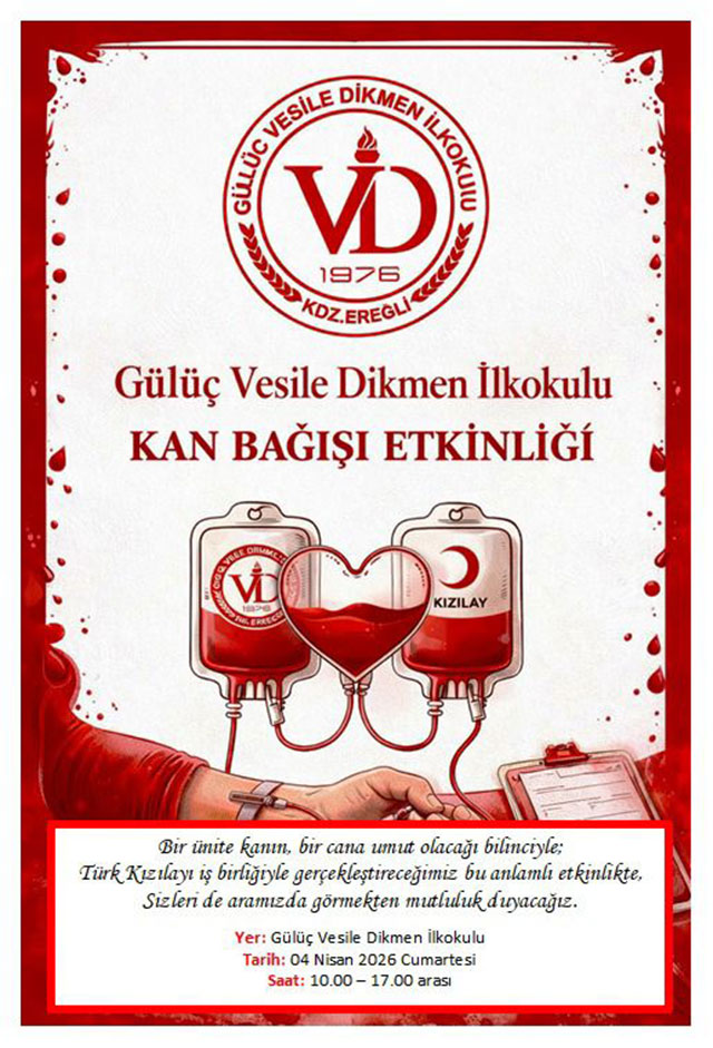 EĞİTİMDEN KAN DESTEĞİ![]() Zonguldak’ın Karadeniz Ereğli İlçesinde, eğitim camiası kan bağışı etkinliği gerçekleştiriyor. İlçeye bağlı Gülüç Beldesindeki Vesile Dikmen İlkokulu tarafından organize edilen kan bağışı kampanyası 4 Nisan Cumartesi gerçekleştirilecek. “Bir ünite kanın bir cana umut” bilinci ile organize edilen kampanya Gülüç Velise Dikmen İlkokulu’nda saat 10.00’da başlayacak, saat 17.00’de sona erecek. Türk Kızılay iş birliği ile organize edilen kampanyaya, eğitim camiasının yanı sıra vatandaşların da destek vermesi bekleniyor.