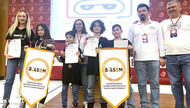 ECOCYCLE, ANKARA’DA BİRİNCİ…![]() Zonguldak’ın Karadeniz Ereğli İlçesindeki Şahinde Hayrettin Yavuz Bilim Sanat Merkezi (BİLSEM) öğrencileri, Robotex International Türkiye Şampiyonası Ankara Bölge Finalinde Şampiyon oldular. BİLSEM’de ilkokul öğrencileri Mustafa Aybars Ayyıldız, Tuna Çoraman, Defne Keskin ve Ömer Yağız Çamlı’dan oluşan “ECOCYCLE Takımı” danışman öğretmen Gülhan Aydın eşliğinde hazırladıkları robot projesiyle yarışmanın birinciliğini elde etti. Ereğli BİLSEM ekibi elde ettikleri başarı ile Antalya’da 2. Ayağı yapılması kararlaştırılan Robotex International Türkiye Şampiyonası'na katılmaya hak kazandı. Buradaki yarışma sonucunda büyük final ise Kore’de yapılacak. JÜRİ ÖZEL ÖDÜLÜ ALDILAR Bu arada, aynı şampiyonaya ortaokul düzeyinde katılan BİLSEM öğrencilerinden Selim Ergün, Kerem Abasız, Ali Osman Aksoy, Berkay Akbal ve Aren Tuna Çatalkaya ise Robomiku Sumo 1 kilogram kategorisindeki performanslarıyla “Jüri Özel Ödülü”ne layık görüldü. Ekip, elde ettiği derece ile “Türkiye Finalleri"nde yarışma hakkı kazandı. DANIŞMAN AYDIN HEYECANLI VE GURURLU ECOCYCLE Takımı Danışmanı Aydın, söz konusu yarışmanın dünyanı nen büyük festivallerden biri olduğunu belirterek, elde ettikleri başarının kendisini heyecanlandırdığını ve gururlandırdığını belirtti. Öğrencilerimin azim, teknik beceri ve takım ruhu ile hareket ettiklerini anlatan Aydın, şunları kaydetti: “Yaşadığımız bu deneyim, bizim için sadece bir kodlama süreci değil; aynı zamanda çocukların problem çözme, kritik düşünme ve geleceğin teknolojilerine yön verme yolculuğudur. Şimdi odak noktamız Antalya! Robotlarımızı, öğrencilerimin hayal gücü ve bilgi birikimleriyle donatıp, yazılımsal ve donanımsal olarak daha da güçlendirerek, Türkiye Finallerinde okulumuzu, ilçemizi ve ilimizi en iyi şekilde temsil etmek için özveriyle çalışıyoruz. Hedefimiz; ülkemizi, Güney Kore’nin başkenti Seul’da düzenlenecek olan dünya finallerinde temsil etmek. Bu başarıda emeği geçen tüm öğrencilerimi ve bize destek olan velilerimizi yürekten kutluyorum.”