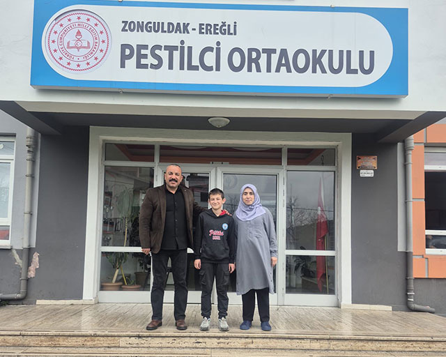 TÜRKİYE FİNALLERİNE KALDI![]() Zonguldak’ın Karadeniz Ereğli İlçesindeki Pestilci Ortaokulu öğrencisi İskender Barlas Likoğlu’nun, Ulusal matematik Şampiyonasında Türkiye finallerine kaldığı bildirildi. Pestilci Ortaokulunun sosyal hesaplarında yer verilen bilgiye göre, 6/A sınıfı öğrencisi Likoğlu, başarısının ardından velisi ile birlikte Okul Müdürü Ömer Alagöz’ü ziyaret etti. Öğrencisini ve ailesini kutlayan Müdür Alagöz, “Öğrencimiz İskender Barlas Likoğlu 'nu ve ailesini tebrik ederiz. Emeği geçen Matematik Öğretmenimiz İlknur Şener Çevik ve Matematik zümremize teşekkürlerimizi sunarız” ifadelerine yer verdi. Müdür Alagöz, ziyaretin ardından öğrenci ve velisi ile birlikte okul binası önünde hatıra fotoğrafı çektirdi.