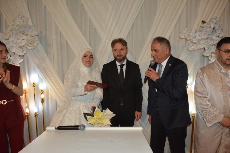 DUALAR EŞLİĞİNDE…![]() Zonguldak’ın Karadeniz Ereğli İlçesinde, Semra & Zafer Ekmekçi, dualarla kıyılan nikah sonrası dünya evine girdi. Türkan-Nejat Demirbaş ailesinin kızı Semra ile Firdevs-Necmi Ekmekçi çiftinin oğulları Zafer, Tatoğlu Kültür Merkezi’nde düzenlenen nikah töreni için salona kalabalık davetlinin yoğun alkışları ile girdi. Aralarında Ak Parti Zonguldak Milletvekili Saffet Bozkurt, Gülüç Belediye Başkanı Sadık Recep Kara’nın da yer aldığı adeta ‘şahitler ordusu’ eşliğinde Kdz. Ereğli İlçe Müftüsü Harun Aydoğdu eşliğinde okunan dua ardından genç çiftin nikahları kıyıldı. Nikahı kıyan Müftü Aydoğdu, evlilik cüzdanını vermesi üzerine Milletvekili Bozkurt’a teslim etti. Bozkurt, gençlere ömür boyu mutluluk dileğinde bulunarak evlilik cüzdanı da geleneği bozmayarak elin Semra Ekmekçi’ye teslim etti. Salonun tamamen dolduğu Semra & Zafer Ekmekçi çiftinin nikah merasiminde; Kandilli Belediye başkanı Osman Çakmakoğlu, Ak Parti Ereğli İlçe Başkanı Mücahit Andiç, Ak Parti Gülüç Belde Başkanı İsmail Yılmaz, eski Ak Parti İlçe Başkanlarından Fatih Çakır, bazı sivil toplum kuruluş başkan ve yöneticileri ile ailelerin akraba, dost ve yakınları katıldı. Hakimiyet Yayın Grubu olarak Semra & Zafer Ekmekçi çiftine ömür boyu mutluluklar diler, bu mutlu beraberliği ‘olur’ veren ailelerini kutlarız.