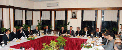 Belediye Plaj Restoran’ta verilen yemekte konuşan Sesli, kardeş kent oluşumunun, Mustafa Kemal Atatürk’ün, “Yurtta Barış, Dünyada Barış” ideolojisinin en güzel örneklerinden biri olduğunu savundu. Sesli, “bizler barış ve kardeşliğin öncelikle fertler arasında gerçekleşeceğine inanıyoruz. İki kişi arasındaki iletişim barış ve kardeşliği içerdiği takdirde, halklar ve devletler arasında barıştan ve kardeşlikten bahsedebiliriz” dedi. Alchevsk Belediye Başkanı Vladimir Chub da, kendilerine gösterilen ilgiden memnunluk duyduklarını, ilçenin zengin bir kent olmasının yanı sıra halkının da misafirperver ve sıcak kanlı olduğunu, oluşturulan kardeşliğin başarılı sonuçlar doğuracağını ifade etti. Yemeğe, Zonguldak Karaelmas Üniversitesi Rektörü Prof. Dr. Bektaş Açıkgöz, TTK Genel Müdürü Rıfat Dağdelen, Karadeniz Bölge Komutanlığı Kurmay Başkanı Dz. Alb. Müfit Tosyalı, belediye meclis üyeleri ile bazı şirket yöneticileri katıldı. Konuk heyet, daha sonra ilçeden ayrıldı.